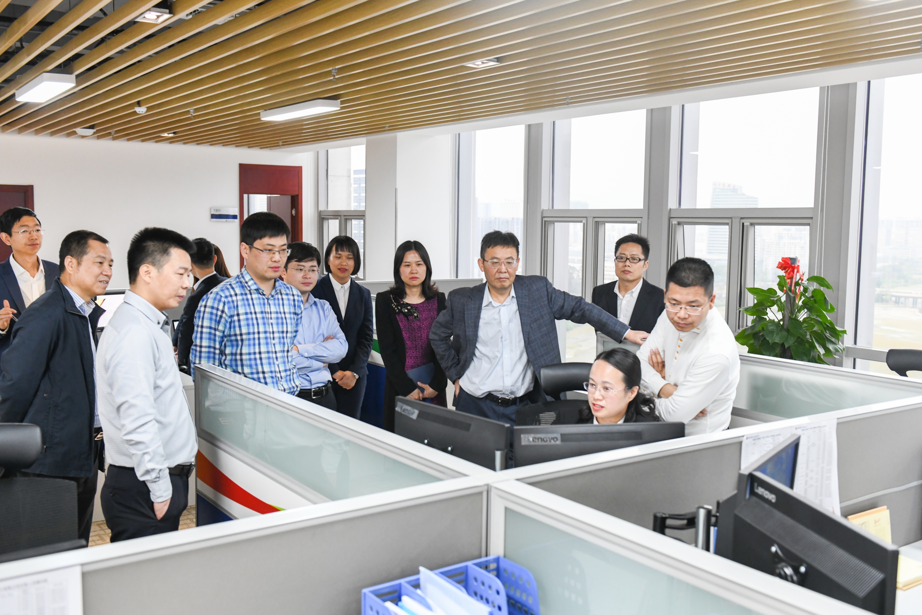 张鸿德一行首先听取了共享中心建设专题汇报,随后至共享中心进行了实地察看。共享中心相关人员对各项流程和功能进行了全方位演示。